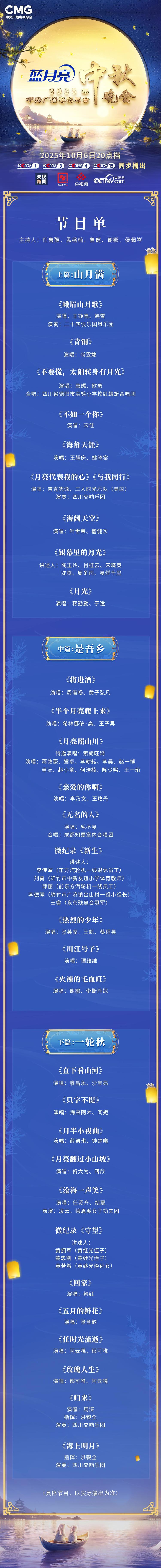 清澈的光充满了古老的舒,灯光反射了中国。发布了“中国中央广播电视2025年中期音乐节晚会”的节目清单。晚间派对依靠Deyang,Sichuan的真实场景,并在三个章节中通过30多个节目,“月亮完整”,“这是我的开放式”和“秋天的扭曲”,它创造了一个永恒的月球概念,反映了山脉,河流,河流和世界的爱。这是世界的尽头。今晚八点钟,“中国中央广播电视2025年中期音乐节晚会”专门由蓝月亮赞助,将在CCTV综合频道(CCTV-1),Varieticn Channel(CCTV-3),中国国际频道(CCTV-4),CCTV-4),CCTV-4),(CCTV-15),(CCTV-15),(CCTV-15),4K Ultra Channel,8k ultra Channel,8K HD HD cctel cctel,CCTV-4(CCTV-3)上播出。频道,8K Ultra HD频道,CCTV-FortisteSemens频道以及其他电视和电视频道,8K Ultra HD频道,频道以及新媒体PLACCTV新闻,CCTV,Cloud Later,CCTV网络,中国无线电网络,国际在线和其他广播频率等TFORMS。观众还可以观看各种技术,例如“在垂直屏幕上观看秋天的夜晚”和“ CCTV 8K屏幕投影”。通用车站的秋天之夜还将同时在许多国家的主流媒体上同时广播KA KA KA DOT新闻,澳门有线电视,澳门杂志和香港点新闻,澳门有线电视,Macauia杂志和香港Dot News,Macau有线电视,Macauia和Andmacau有线电视,Macaua和Macaua电视。在秋天晚上,通用办公室将在秋天的秋天享受明亮的月亮,并享受人间重逢!